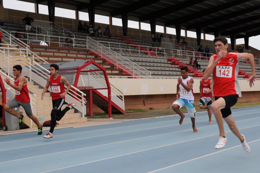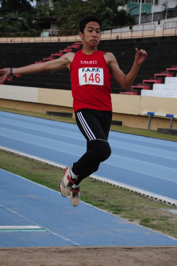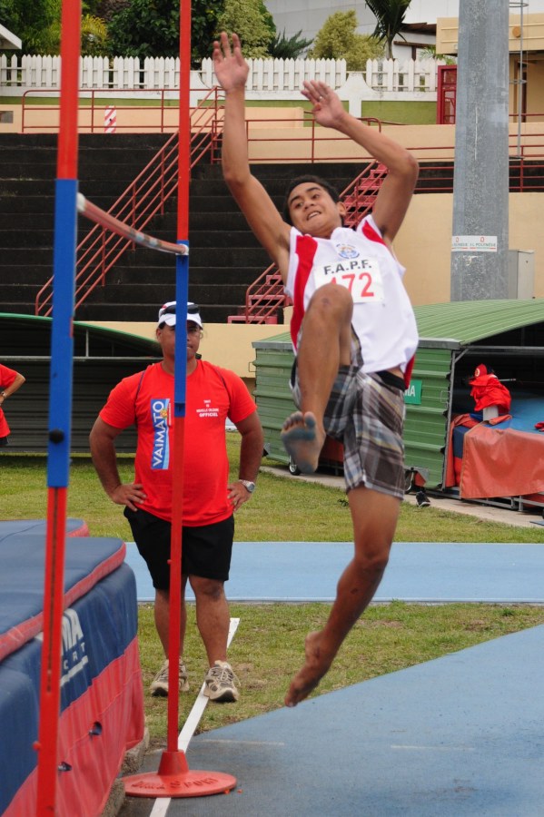 A noter également la victoire pied nus au saut en hauteur du scolaire Tehaamoana TEAMOTUAITAU, avec 1m80, devant Terua TUPAIA qui lui, encore benjamin, avec 1m77 rapporte 47pts à deux cm de son record de Polynésie